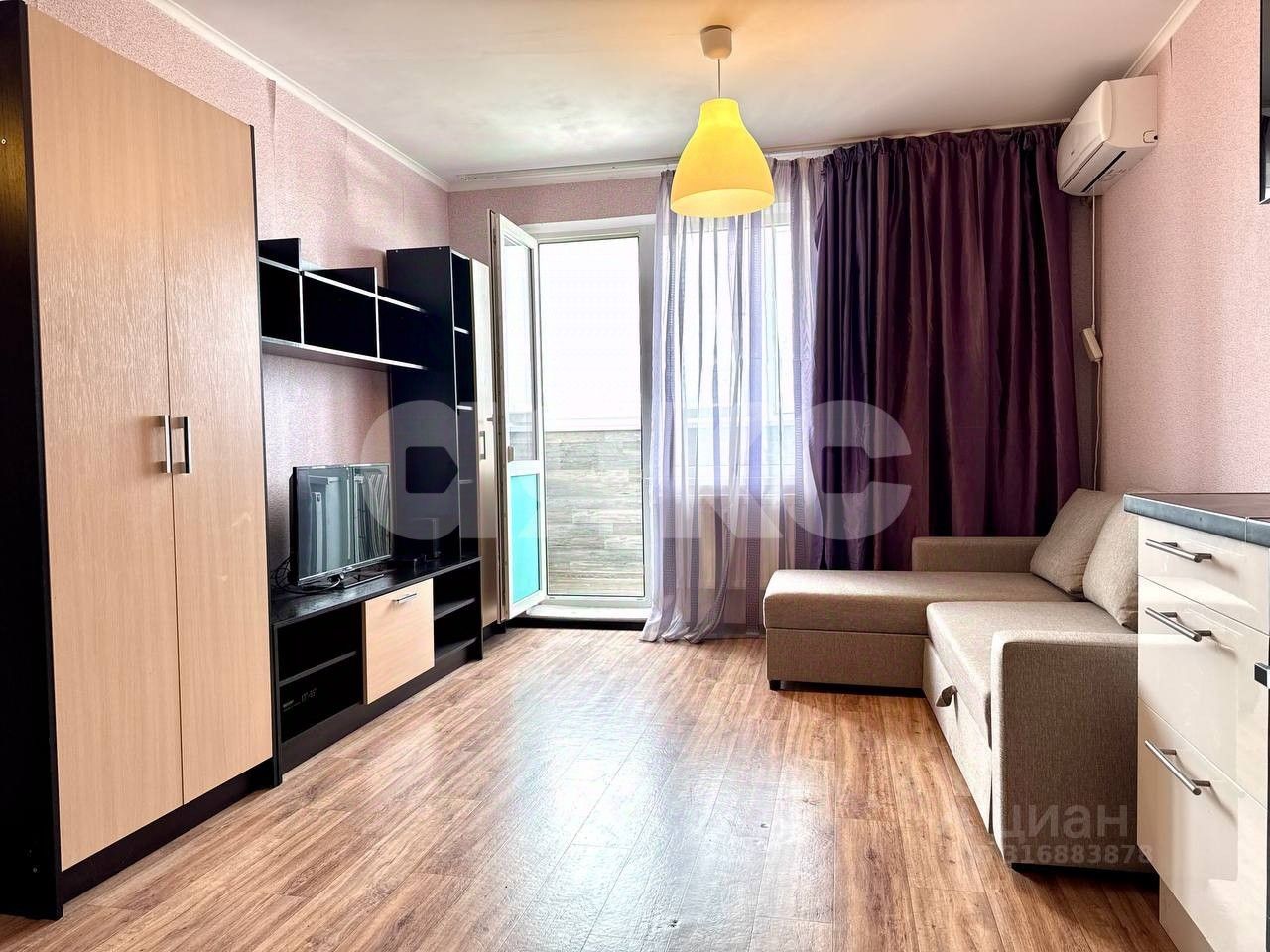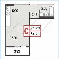 Квартира состоит из просторной жилой комнаты 18 кв.м., санузла- 4.1кв.м, прихожей-3.69кв.м и большого балкона в целых 4кв.м. В ней выполнен качественный ремонт от застройщика, есть все для проживания