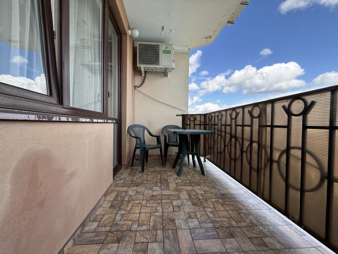 Выход на балкон с видом на море из комнаты и из кухни.