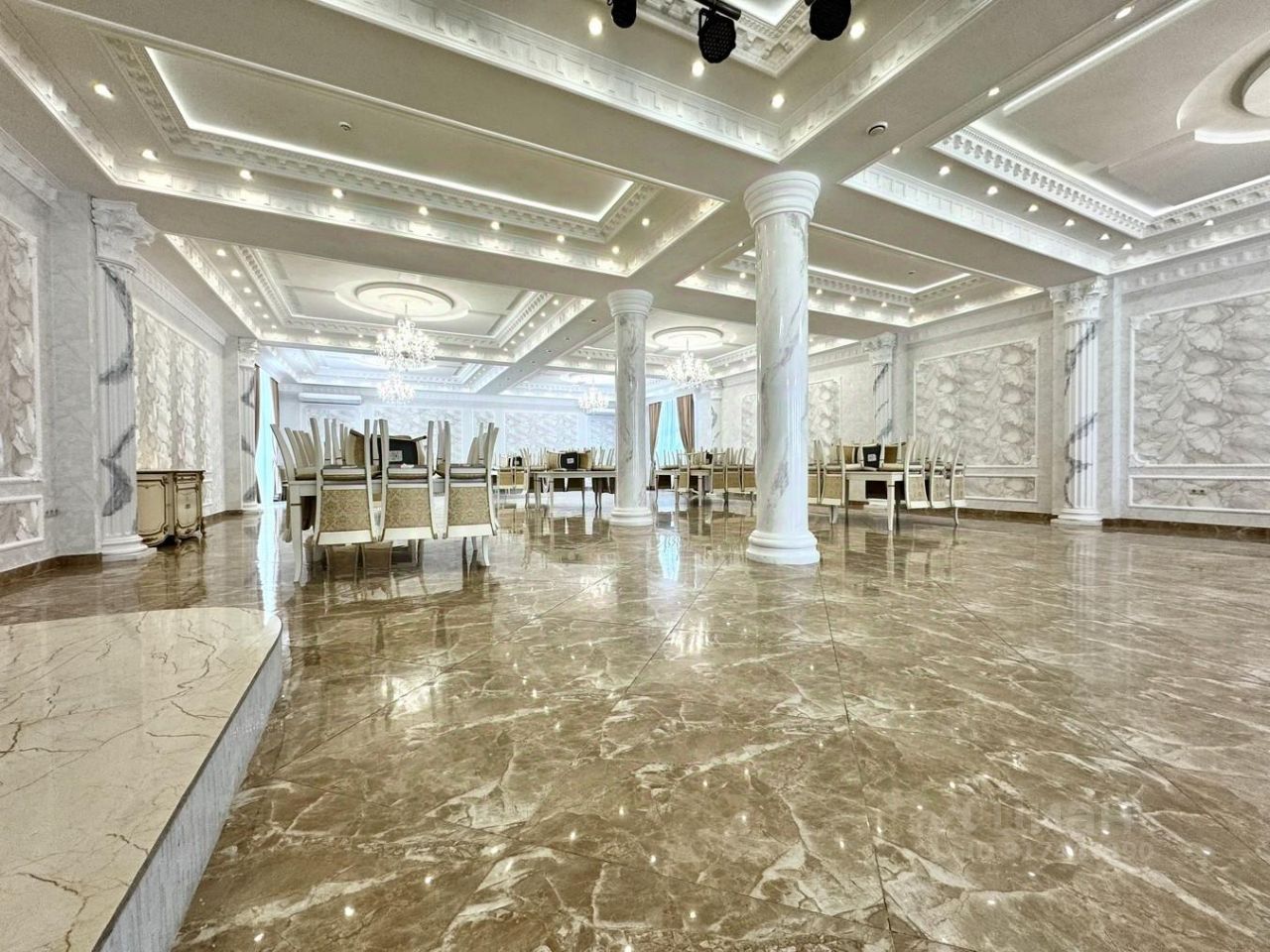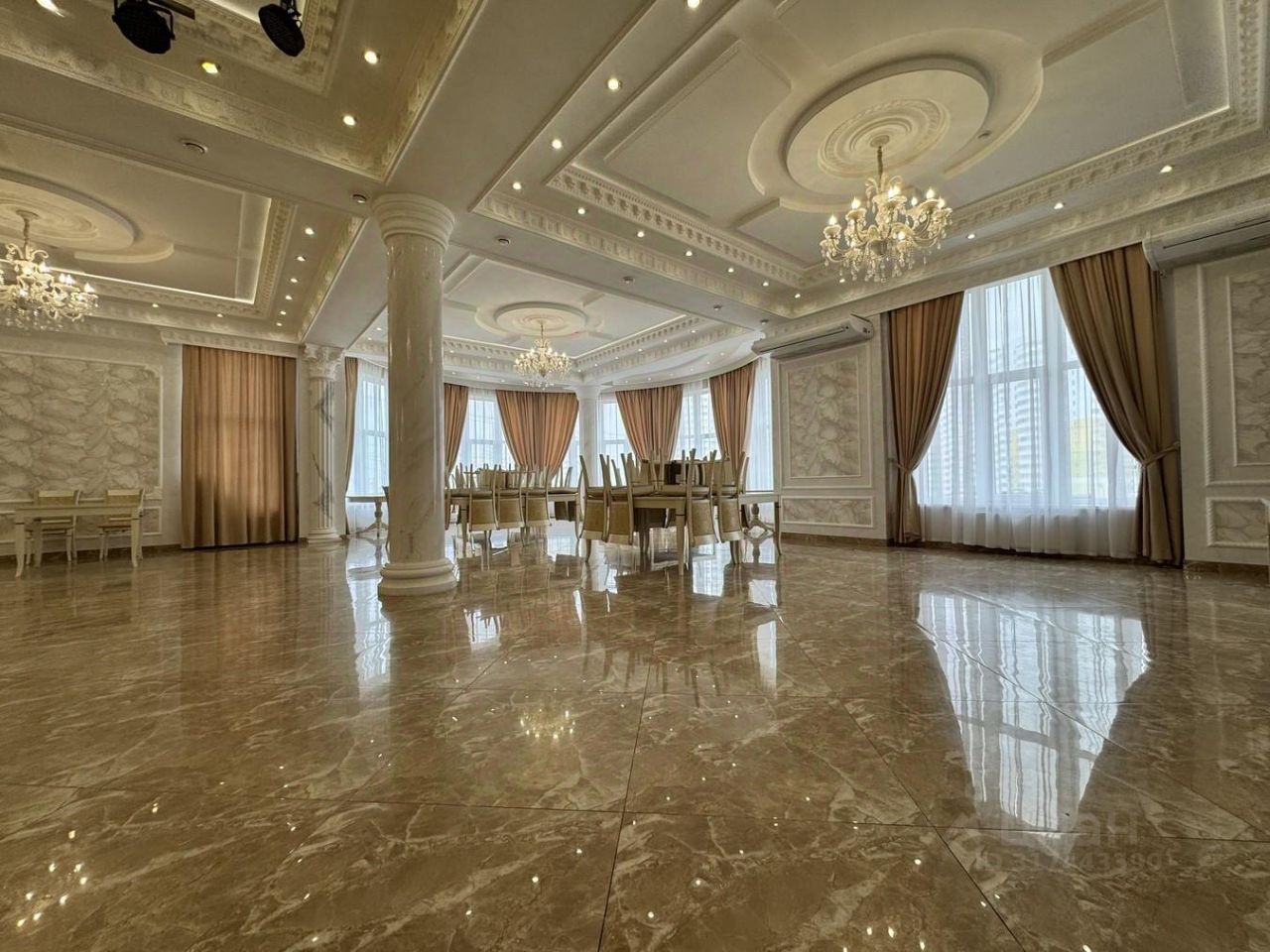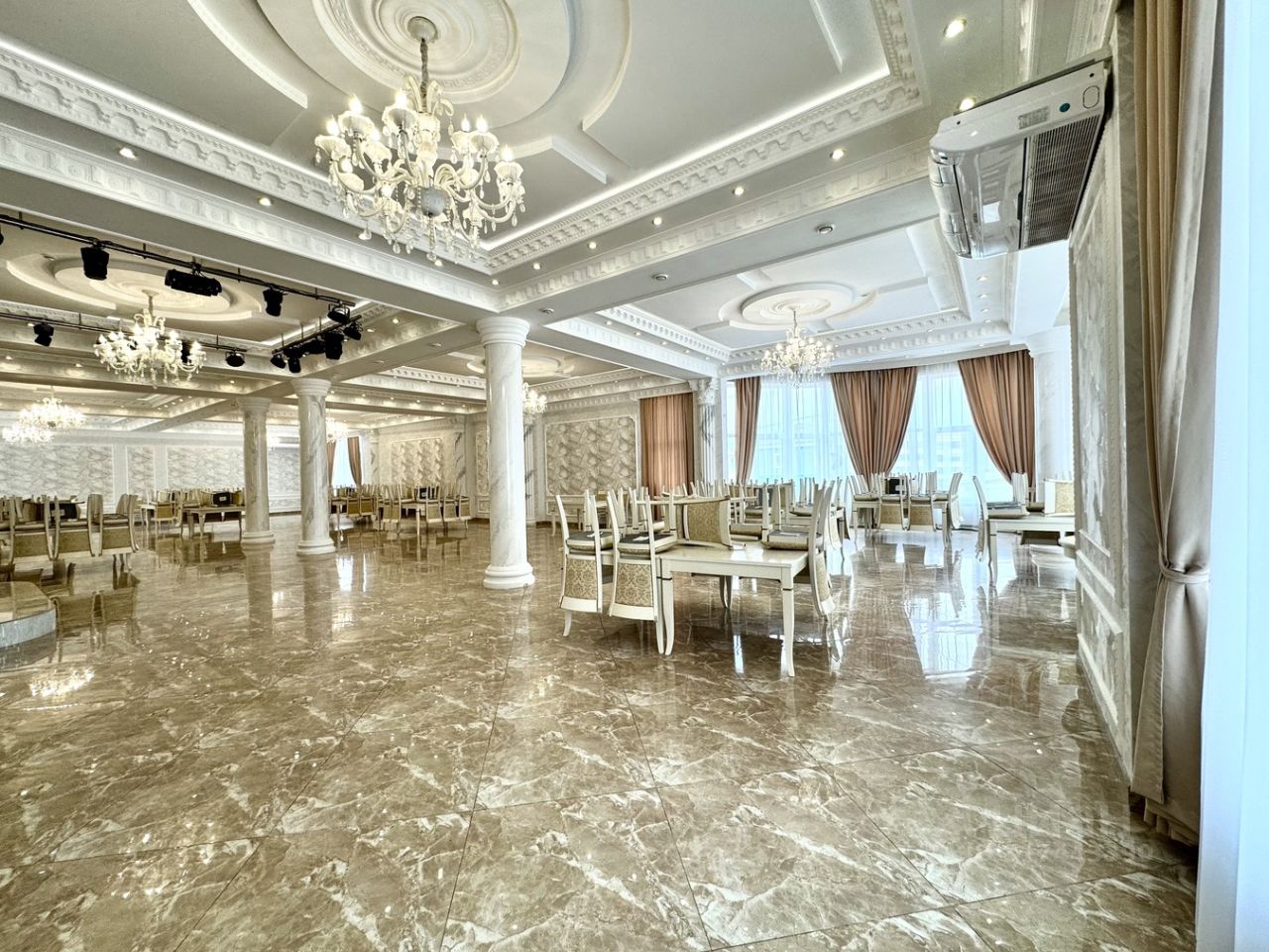 - Банкетный зал (210 м2), вместимостью до 260 гостей - идеален для приема гостей, свадеб, корпоративов и конференций, - Профессиональная кухня (29 м2) с современным оборудованием, - Ресепшен (26 м2) - Складские помещения (16 м2)