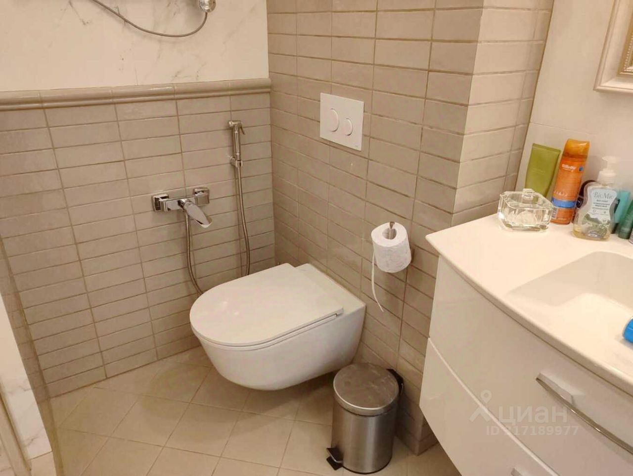 Современный санузел, с качественной сантехникой.