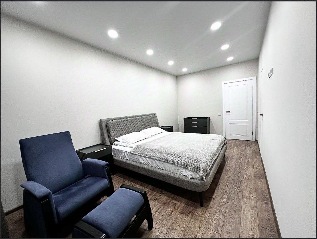 В спальне - отдельная гардеробная, а в ванной - стиральная машина Haier с функцией сушки и пара, бойлер Haier, система теплых полов.