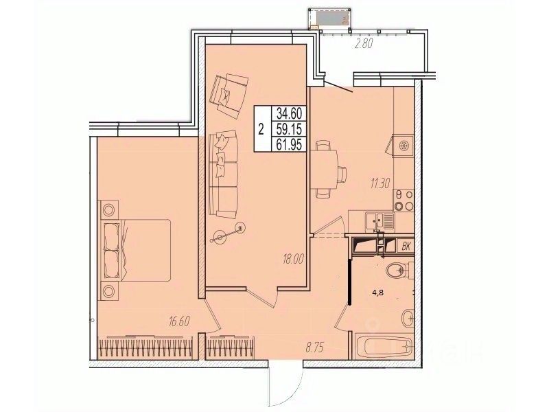 продам 2-к, Омелькова, 9310 500 000 ₽