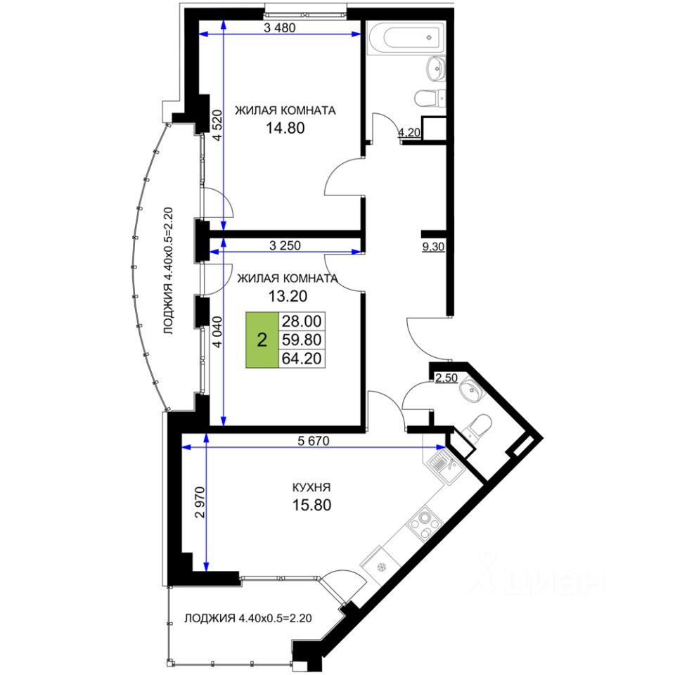 Продаётся 2-комнатная квартира в строящемся доме (Литер 1), срок сдачи: IV-кв. 2025, общей площадью 64.2 кв.м., на 2 этаже. Новый жилой комплекс от застройщика ''Межсанаторный'' расположен по адресу город Анапа, Межсанаторный проезд.