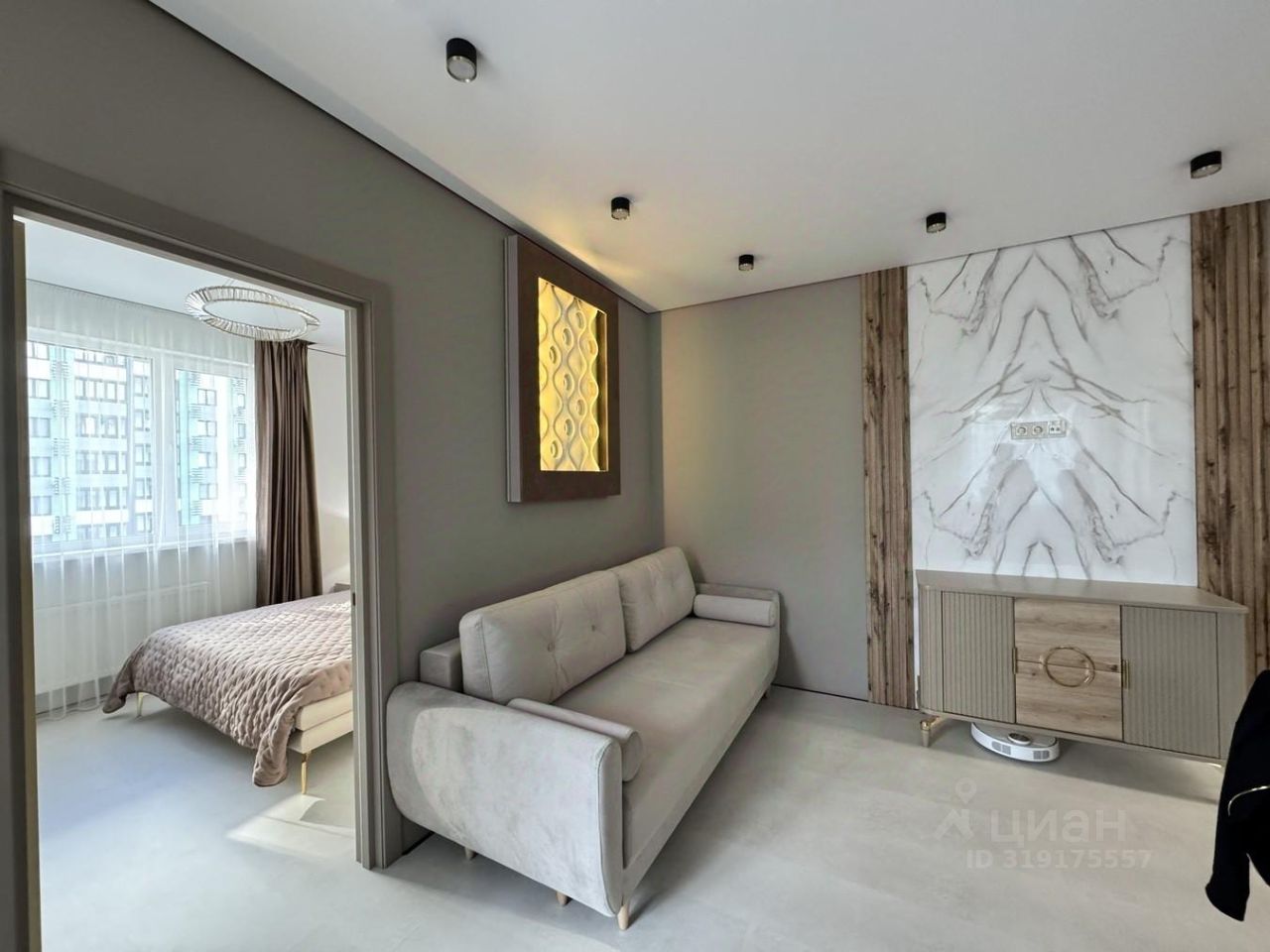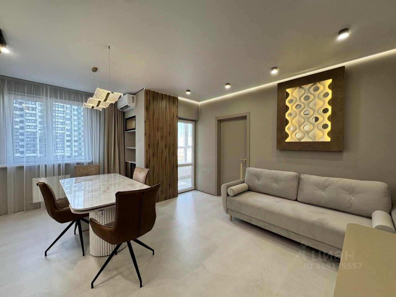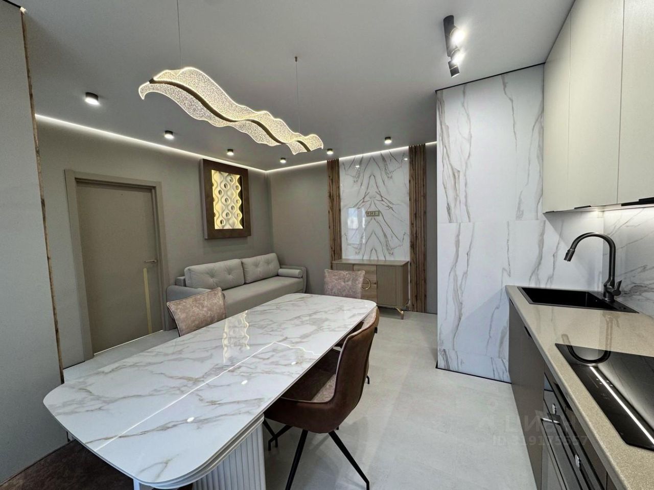 О КВАРТИРЕ: Просторные светлые комнаты оформлены в нейтральных тонах с акцентами на современные материалы и качественную отделку. В квартире выполнена качественная отделка стен, натяжные потолки с встроенной подсветкой, а пол покрыт кварцвинил высокого класса.