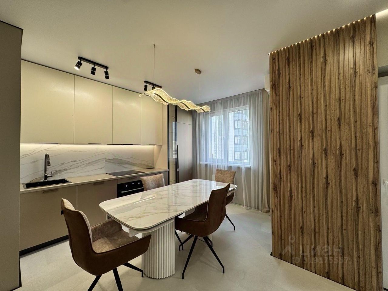 Особое место занимает современная кухня с встроенной техникой, эргономичной мебелью и стильными фасадами. Ванная комната оборудована современной сантехникой и приятной плиткой.