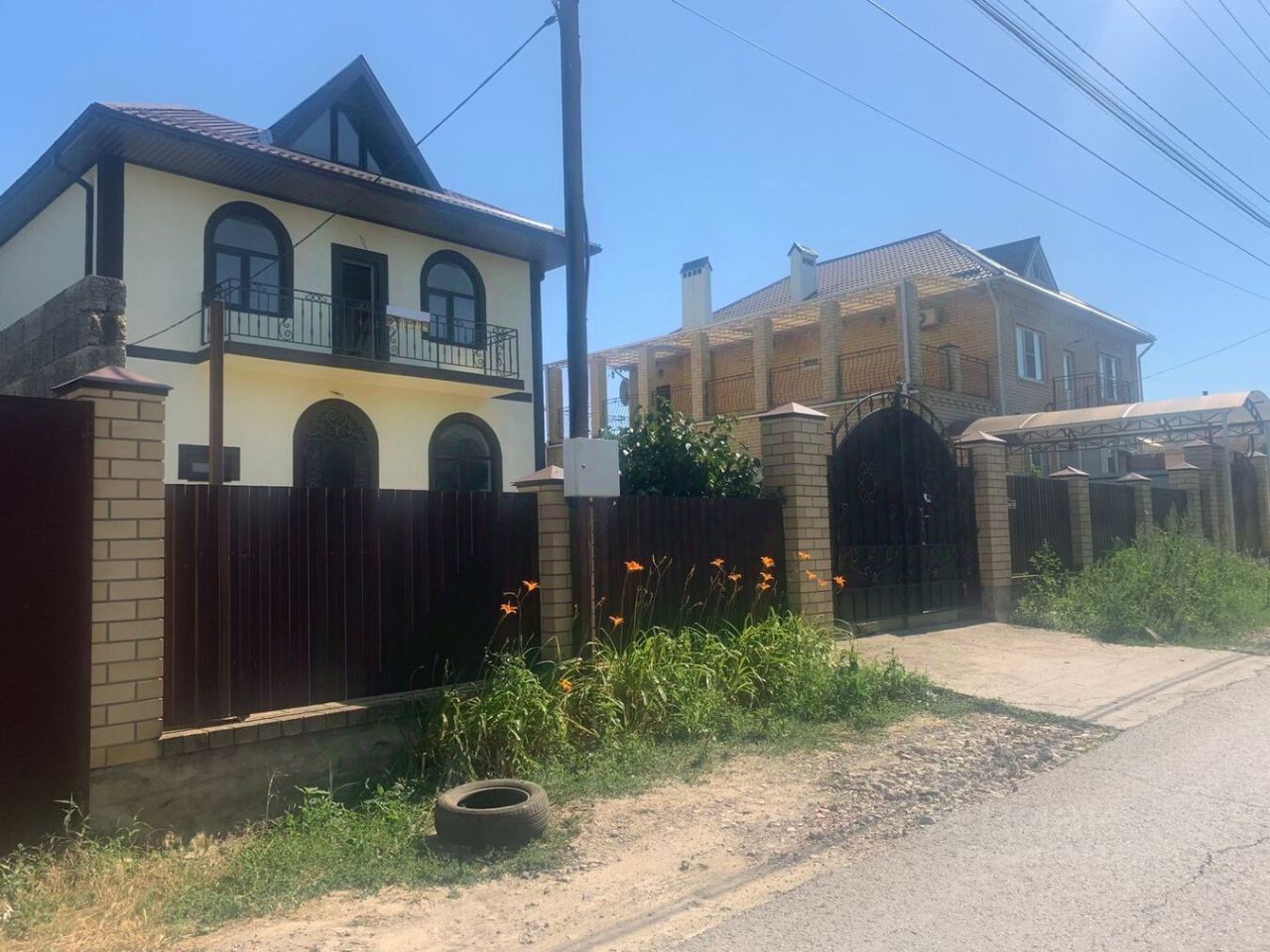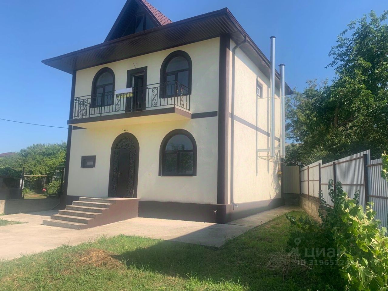 Дом общей площадью 130 кв. метров на участке 3,2 сотки земли с видом разрешенного использования ИЖС. Широкий фасад выходит на тихую малолюдную улицу. Участок полностью огорожен, забор на ленточном фундаменте и зашит профильным листом. Фасадная часть забора выполнена на ленточном фундаменте с кирпичными столбами зашит профильным листом. Установлены качественные ворота с декоративными элементами ковки. Двор полностью благоустроен, тротуарные дорожки и машиноместо выполнены из бетона. Во дворе есть место для грядки или цветника, а также для мангальной зоны.