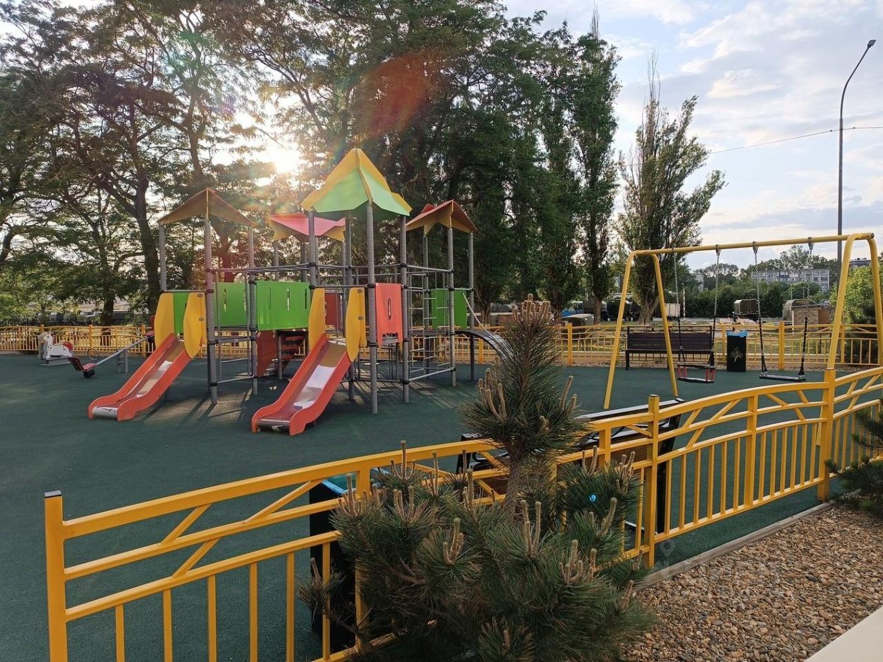 Жилой комплекс ''ТРИО Комфорт'' — это комфорт и безопасность для всей семьи. Закрытая охраняемая территория с удобным шлагбаумом, где ваши дети смогут играть на ярких и оборудованных детских площадках, а вы — наслаждаться отдыхом в беседках или на уютных лавочках. Для активного образа жизни доступны современные спортивные площадки.