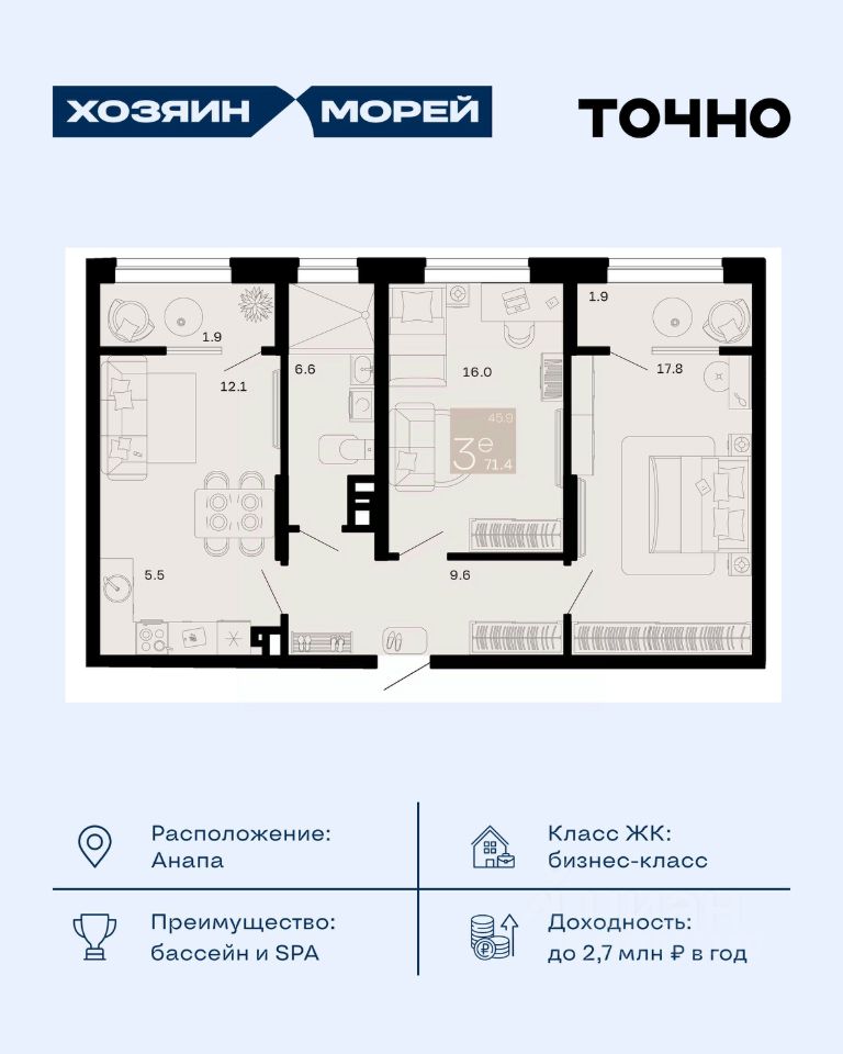 продам 3-к, Супсех16 422 000 ₽