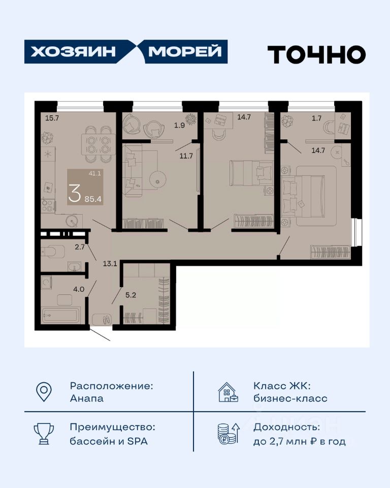 продам 3-к, Супсех26 132 400 ₽