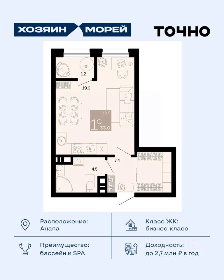 продам 1-к, Супсех8 448 000 ₽