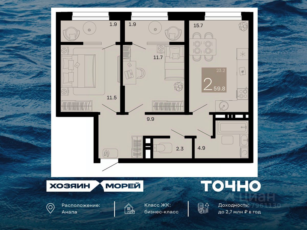 продам 2-к, Супсех15 548 000 ₽