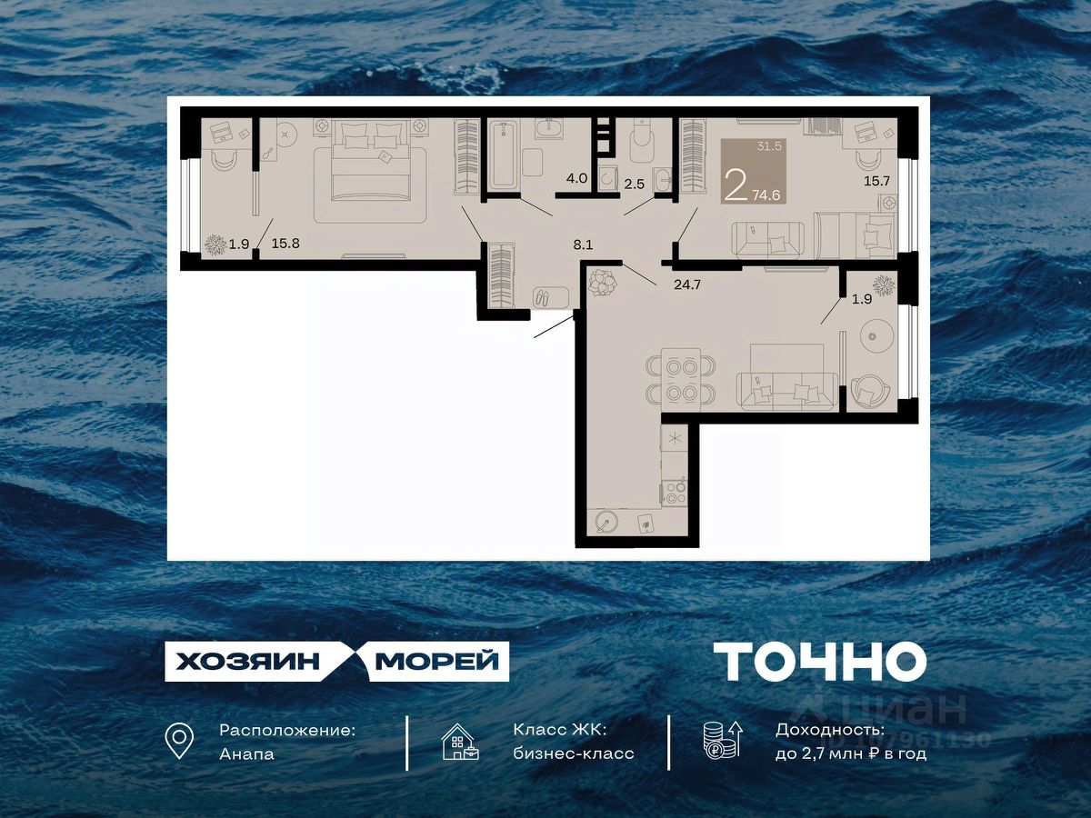 продам 2-к, Супсех18 091 000 ₽