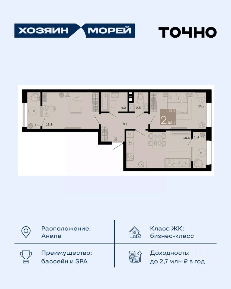продам 2-к, Супсех15 082 200 ₽