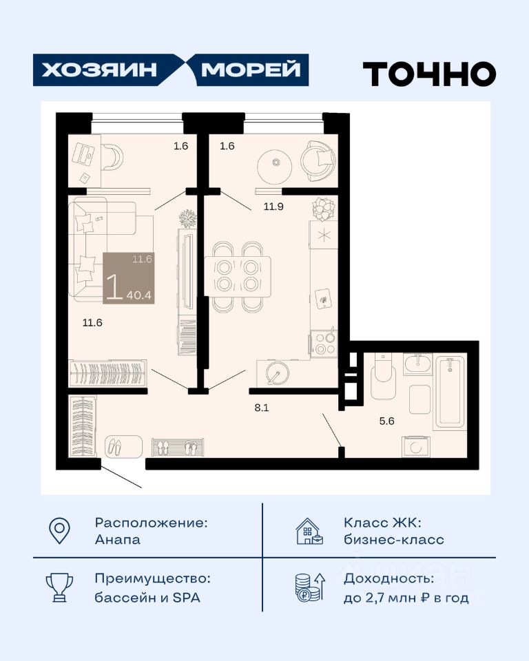 продам 1-к, Супсех9 938 400 ₽