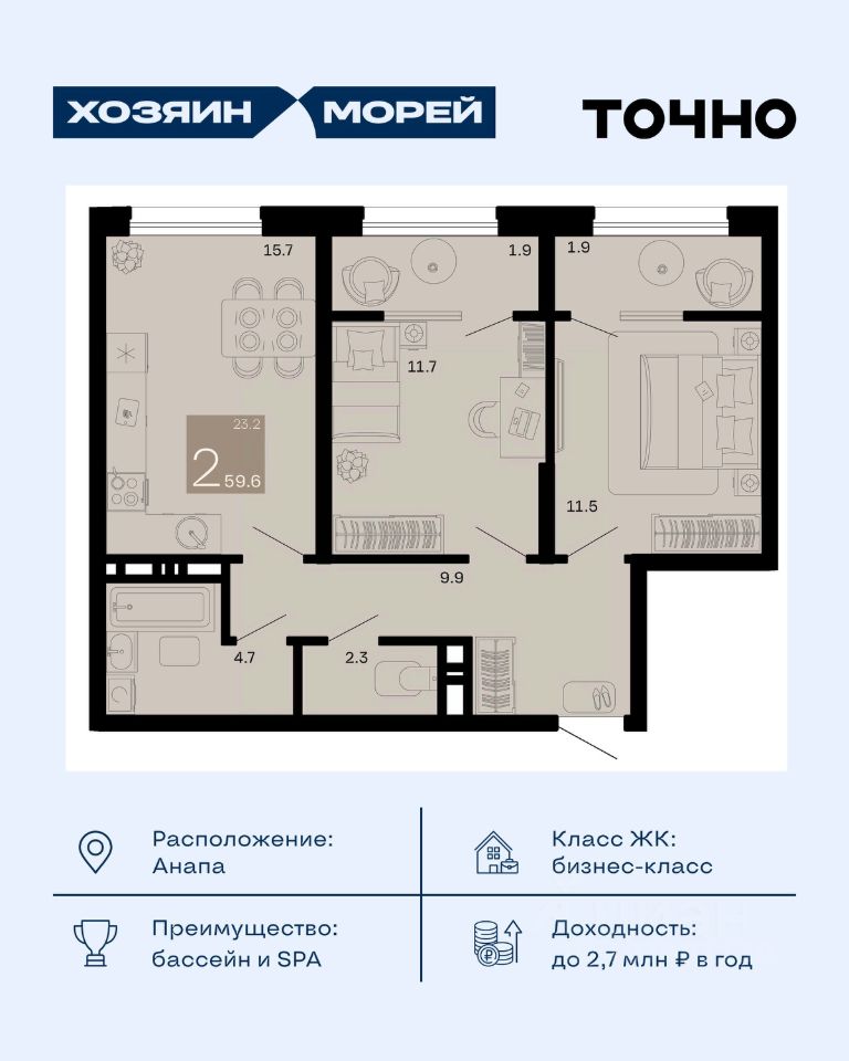 продам 2-к, Супсех19 191 200 ₽