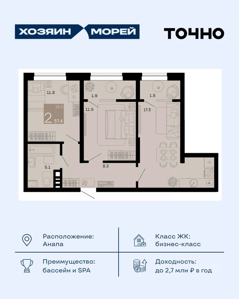 продам 2-к, Супсех18 712 400 ₽