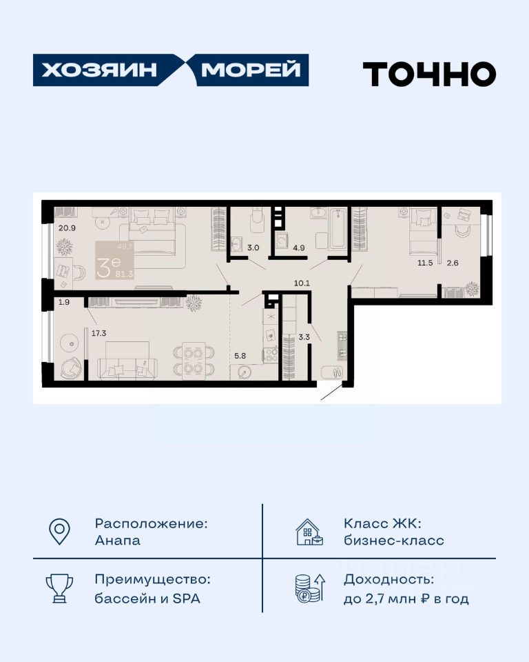 продам 3-к, Супсех25 609 500 ₽