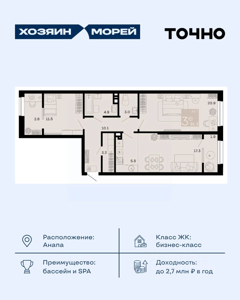 продам 3-к, Супсех18 212 013 ₽
