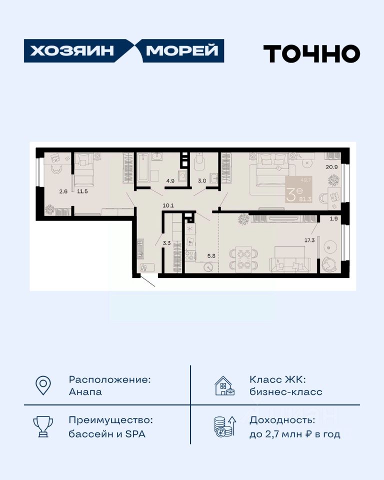 продам 3-к, Супсех17 113 650 ₽