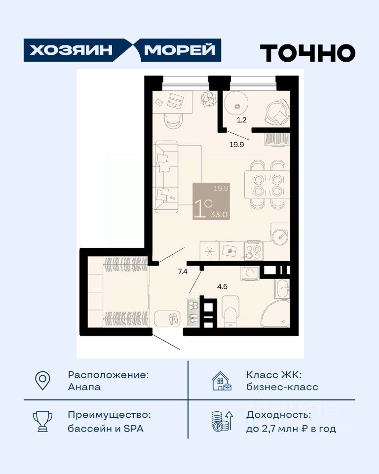 продам 1-к, Супсех12 045 000 ₽