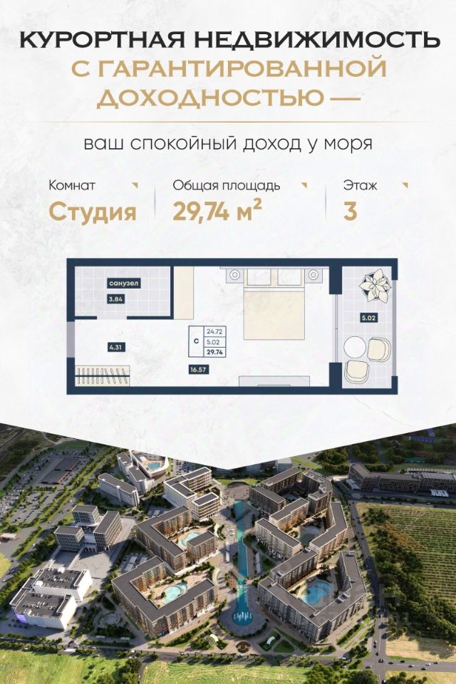 Почему выбирают ''Лучи'' в Анапе: — Доход без забот: вся инфраструктура, управление, маркетинг и обслуживание уже организованы. — Пассивный доход круглый год: крытый аквапарк, медцентр, банный комплекс, 30+ ресторанов, детский центр и конгресс-холл обеспечивают круглогодичную загрузку. — Уверенность в завтрашнем дне: проект реализуется по 214-ФЗ, с эскроу-счетами. Это один из самых защищённых форматов инвестиций.