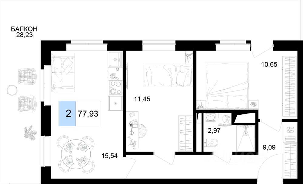 Общая площадь77,93 м2