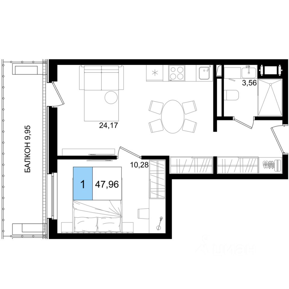 Общая площадь47,96 м2