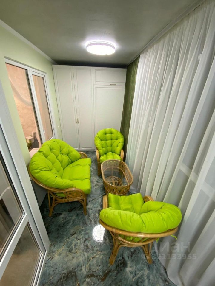 В квартире есть просторная кухня-гостиная и такая же большая жилая комната. Из обоих помещений есть выход на лоджию, которая служит отдельной зоной отдыха.