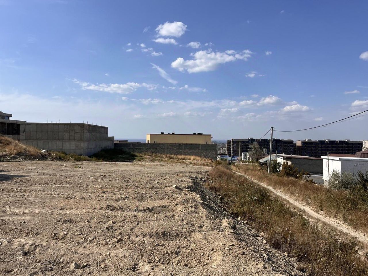 Объект 174056. Продам участок с видом на море, фасад 80х23, коммуникации ( свет, центральный водопровод, газ ) находятся по меже участка, документы готовы к продаже.