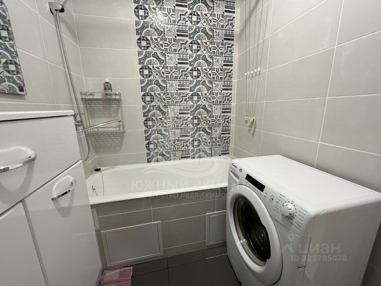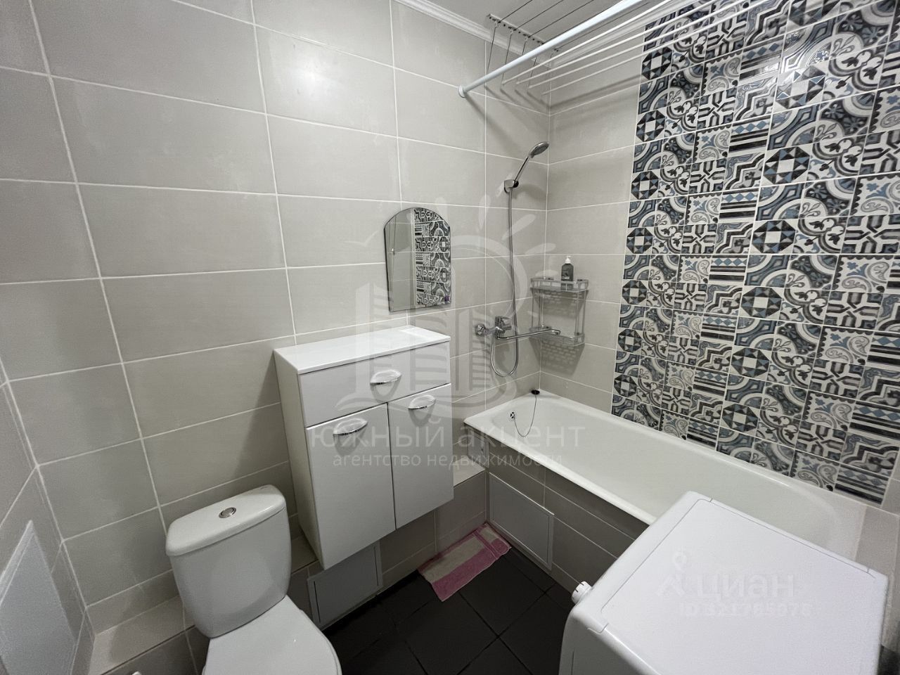 Санузел в квартире полностью облицован плиткой, установлена сплитсистема.