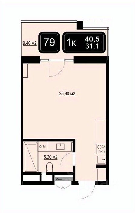 Общая площадь40,5 м2