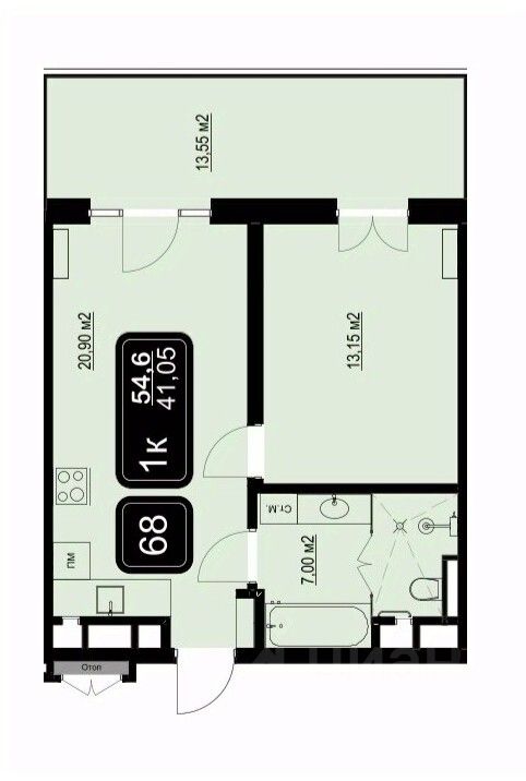 Общая площадь54,6 м2