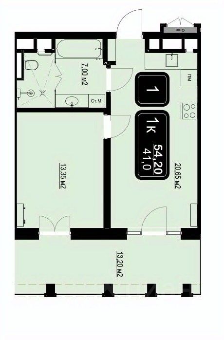 Общая площадь54,2 м2