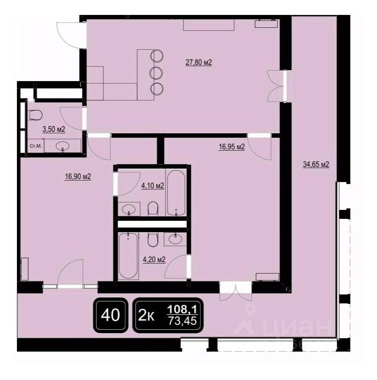 Общая площадь108,1 м2