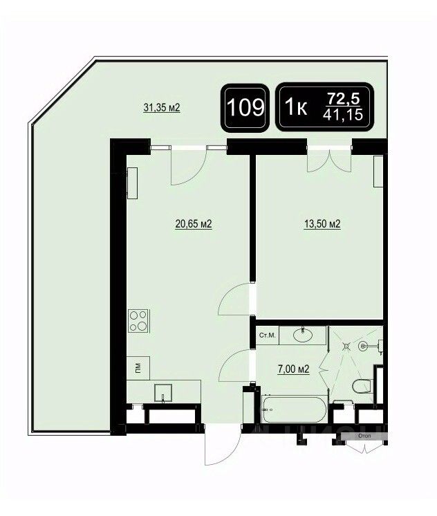 Общая площадь72,5 м2