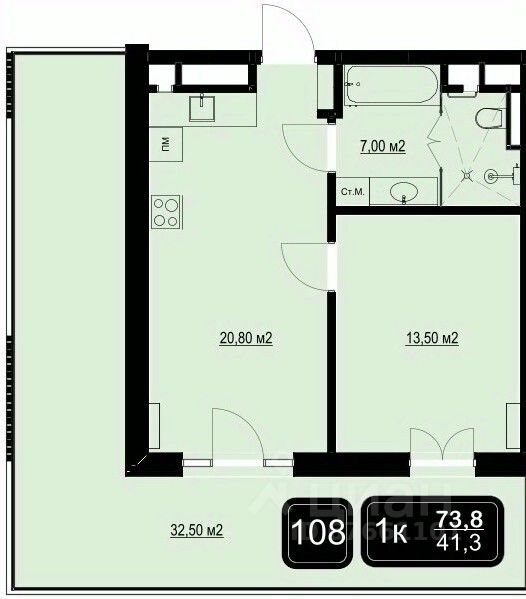 Общая площадь73,8 м2