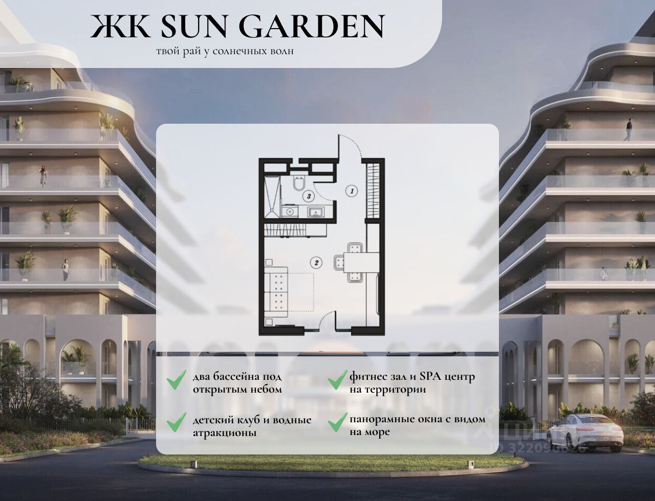 Преимущества отеля ''Sun Garden'': - дизайнерская мебель, рестораны и SPA-центр - здесь каждая деталь продумана для вашего комфорта вплоть до удобных тапочек, - Территория ''Sun Garden'' - это 5 ГА уютного, эргономичного и вдохновляющего пространство, где вы можете наслаждаться каждым моментом. - Фитнес-зал, SPA-центр, кристально чистые бассейны, летние бары, детские клубы - здесь есть все для вашего отдыха и развлечений. - Современный SPA-комплекс с широким спектром релаксационных процедур и заботливыми специалистами для вашего удовольствия. - Идеальное сочетание спорта и отдыха: фитнес-зал с кардио и силовыми тренажерами, а также детский клуб рядом для вашего удобства. - Два бассейна по 50 м под открытым небом, где каждый найдет что-то по душе: от детской зоны с аттракциями до бассейна для активного плавания. - Детский клуб с мастер-классами, развлекательными мероприятиями и заботливыми инструкторами - вашим детям будет интересно и увлекательно.