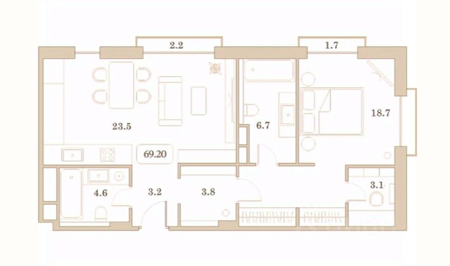 Общая площадь69,2 м2