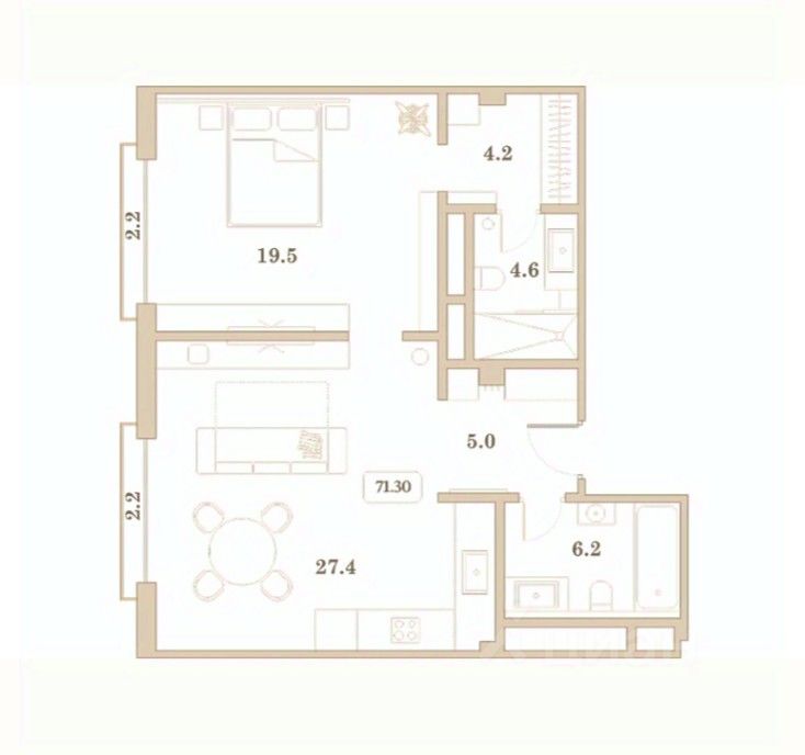 Общая площадь71,3 м2