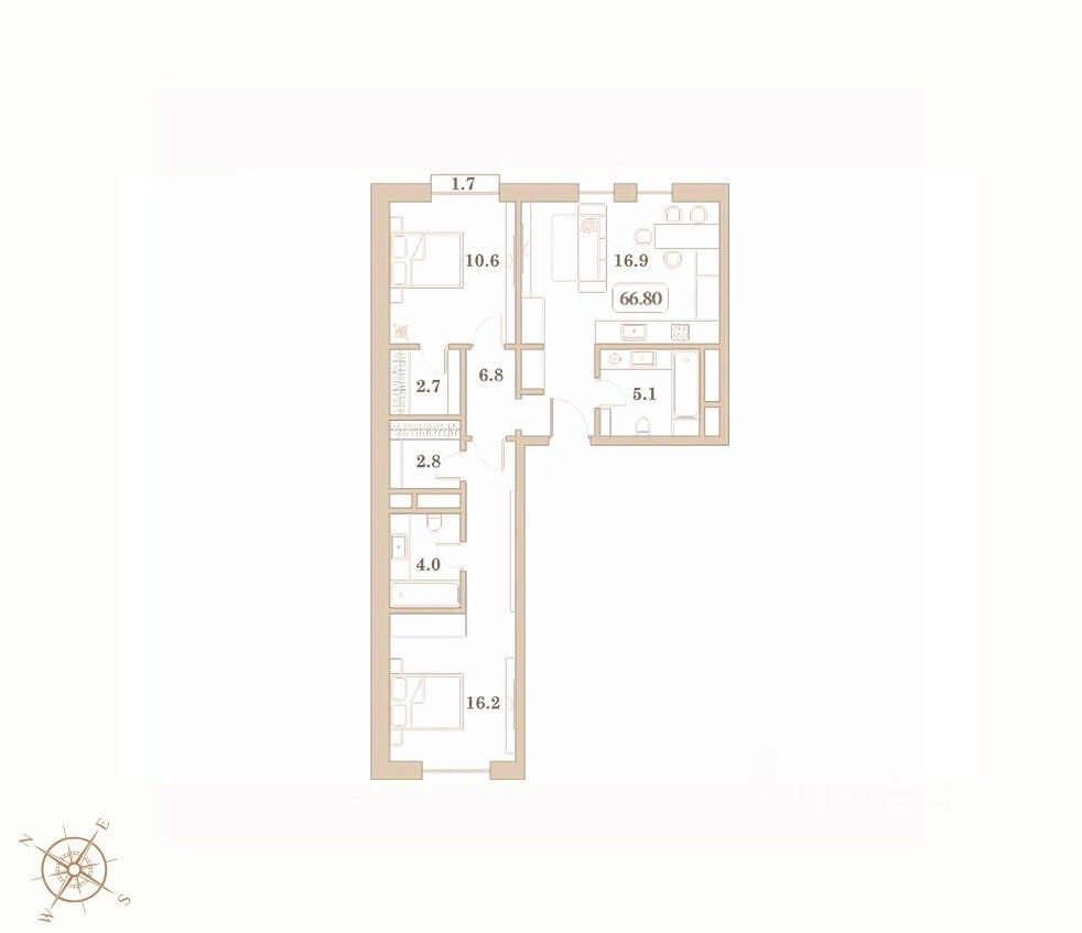 Общая площадь66,8 м2