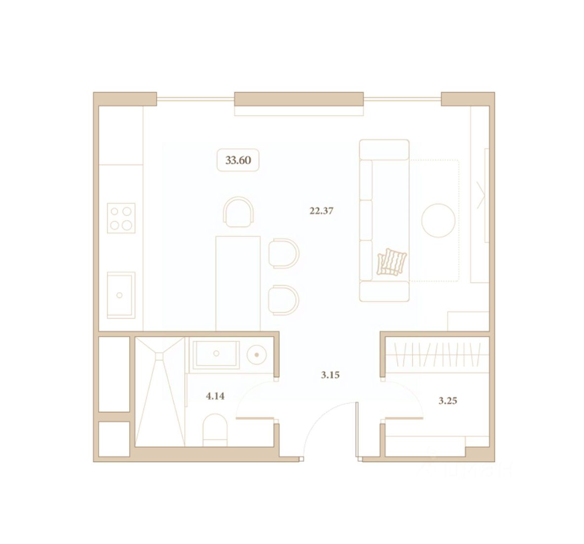Общая площадь33,6 м2