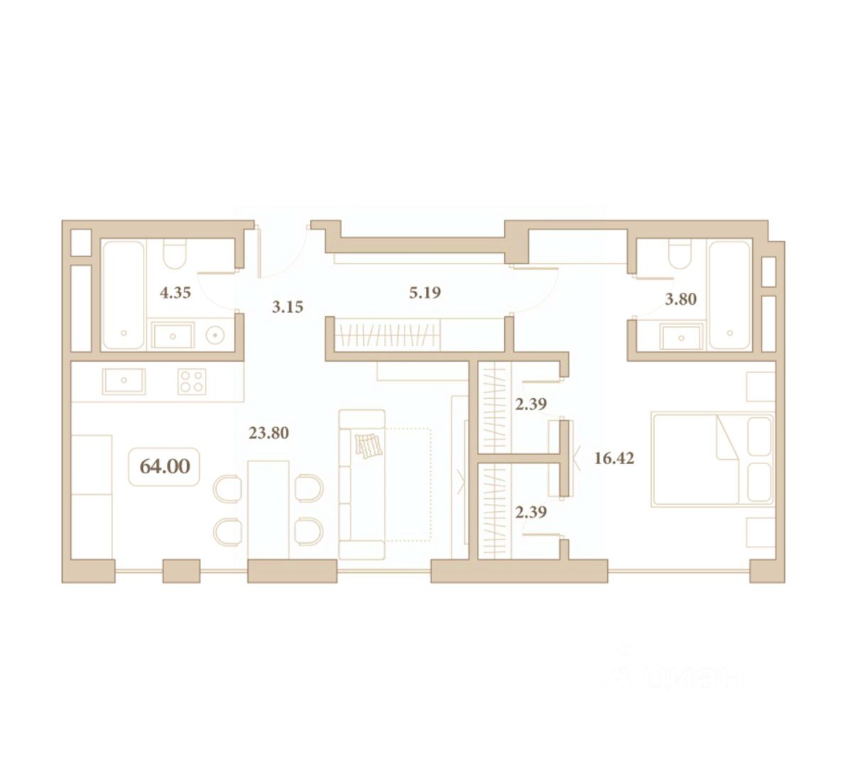 Общая площадь64 м2