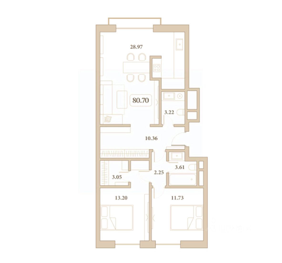 Общая площадь80,7 м2