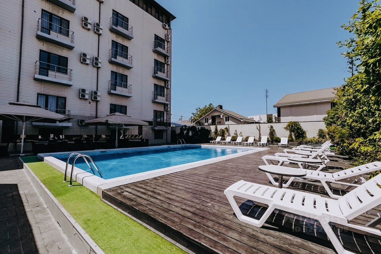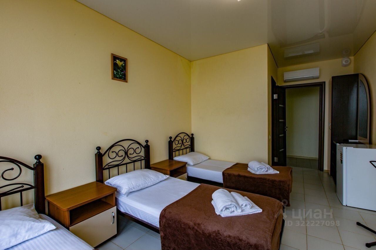 Объект 175161. Витязево , на проспекте Южном у Паралии Тип: Малая гостиница Общая площадь здания: 2 220 кв.м Этажность: 4 этажа + подземный этаж Год ввода в эксплуатацию: 2015 Площадь земельного участка: 1 000 кв.