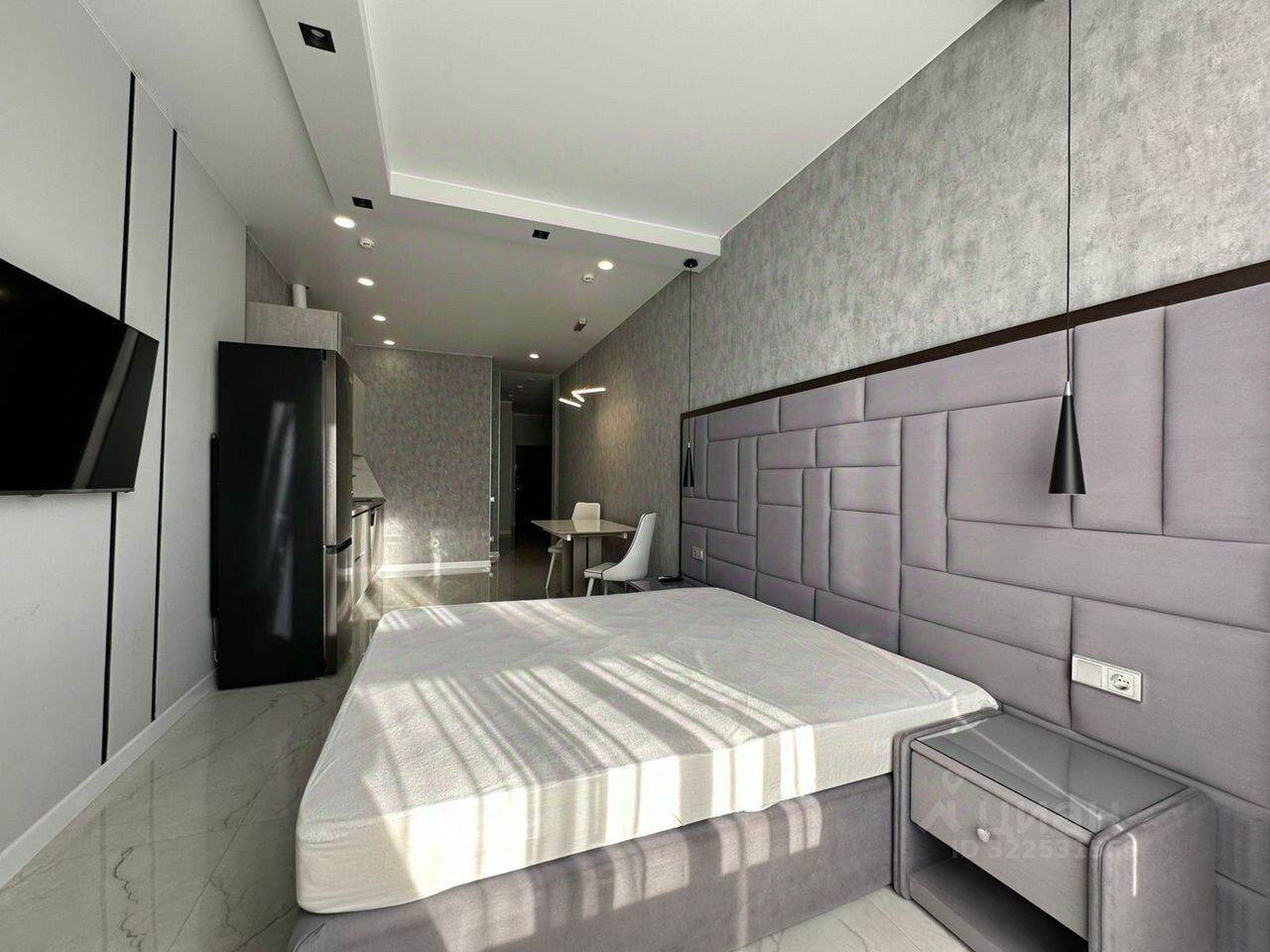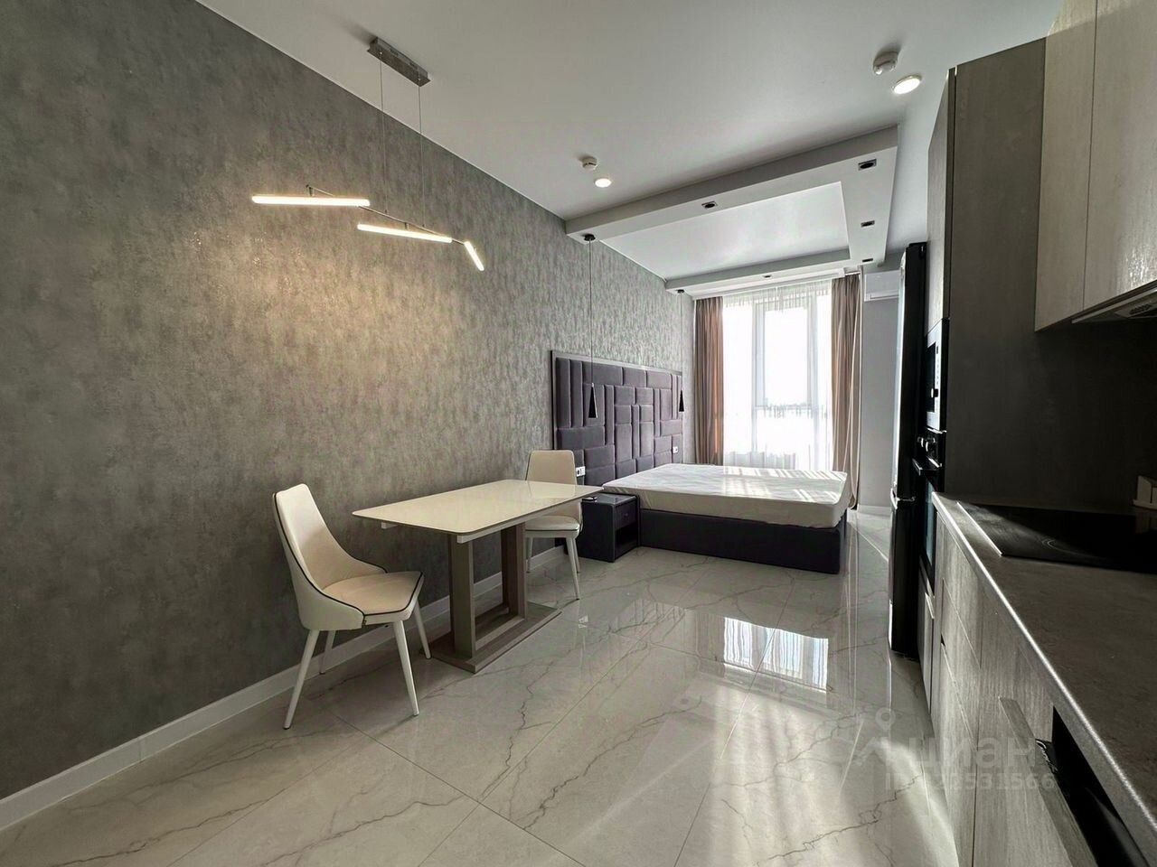 Квартира располагается на 18-м этаже 23 этажного дома. В квартире выполнен дизайнерский ремонт в светлых тонах.