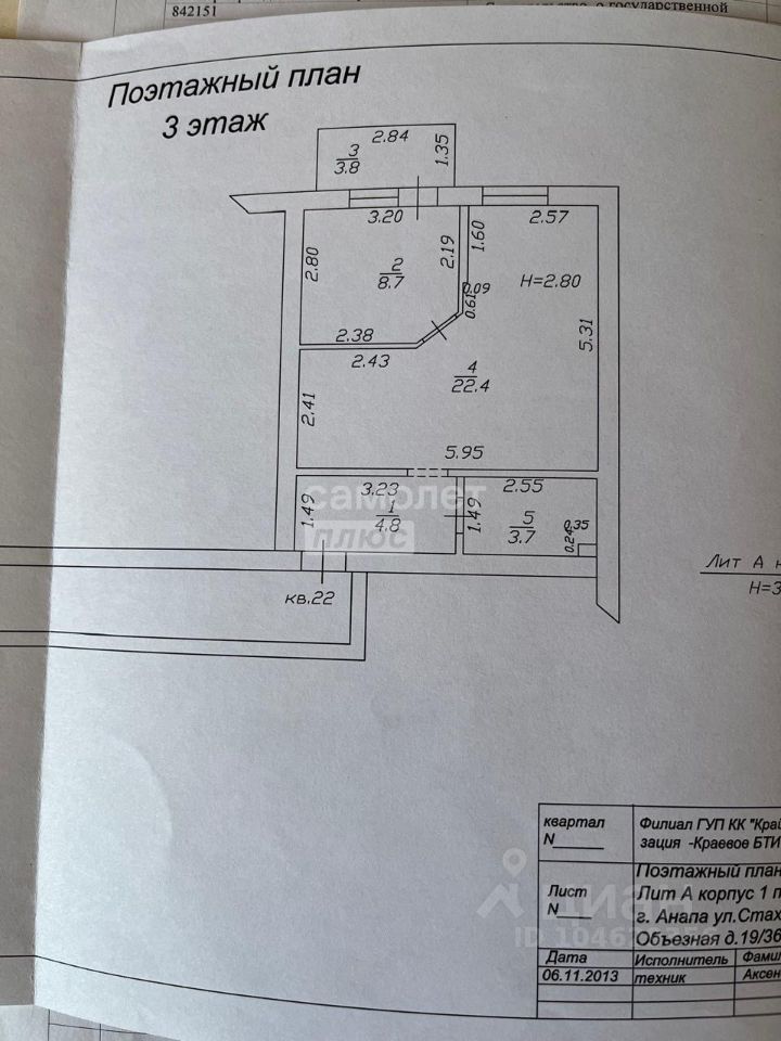 Арт. 119468918 Продается уютная однокомнатная квартира 43,4 кв. м. на 3 этаже 4-этажного дома в районе ТРЦ ''Красная площадь''