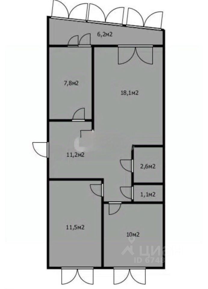 Квартира - распашонка общей площадью 71 квадрат и без балконов 62.