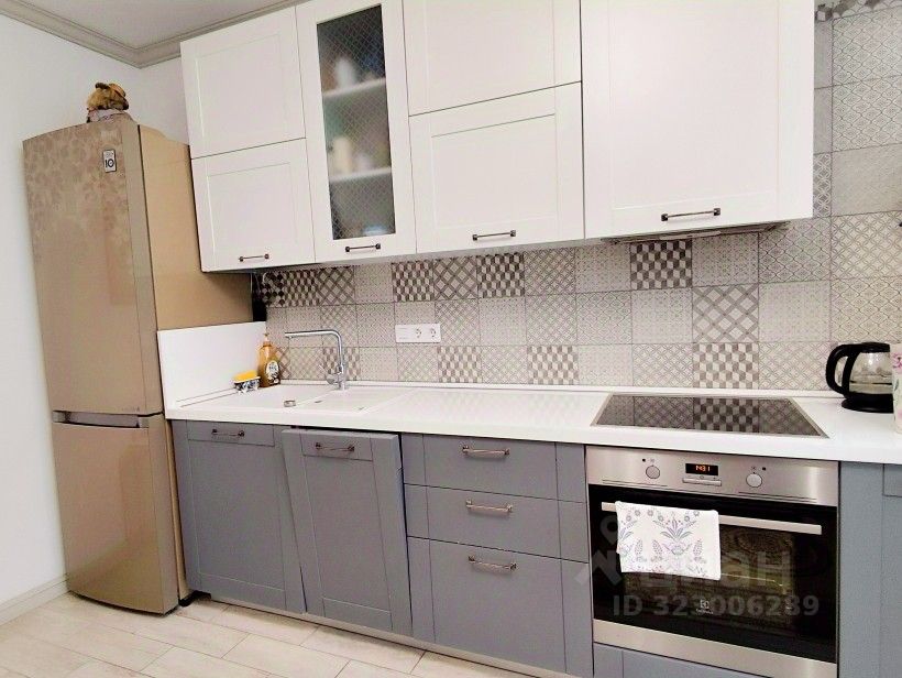 В квартире большая кухня 17,4 кв.м. с выходом на застекленную лоджию. В кухне есть и зона гостиной, и вместительный кухонный гарнитур со всей встроенной бытовой техникой, включая посудомойку. Антивандальный ремонт - с керамической плиткой на стене в тон фартуку и плитке в прихожей. Всё сделано очень качественно, светло и стильно.