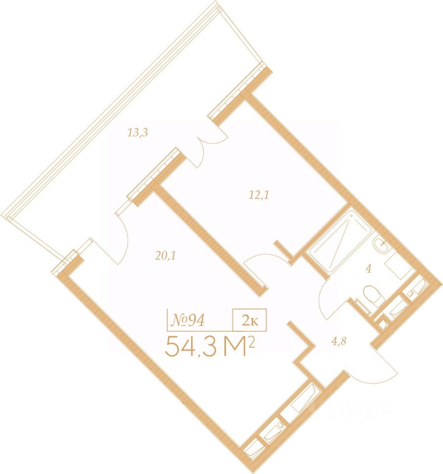Общая площадь54,3 м2