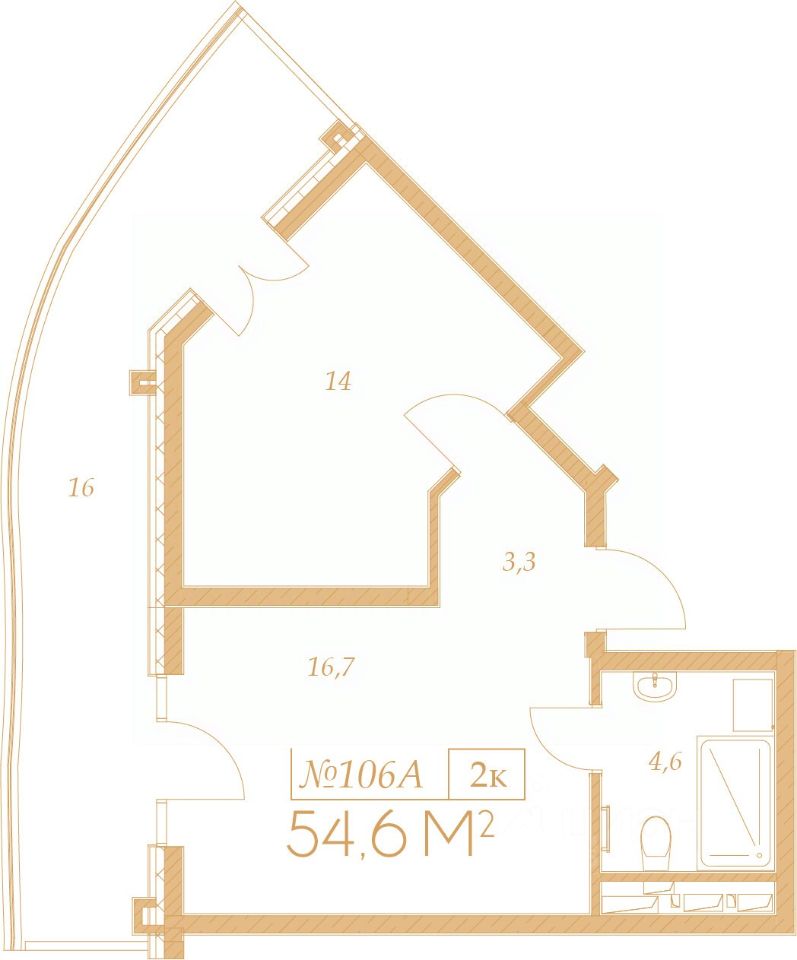 Общая площадь54,6 м2